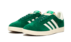 The Adidas Gazelle Faded Archive is a contemporary update to the original '60s design, featuring a fresh, sophisticated look. This model combines shades of Dark Green, Cream White and Off-White in its construction, resulting in a clean and attractive design. The upper is made from dark green suede, contrasting with a white OrthoLite® inner lining and synthetic lining, along with a rounded toe box. In terms of branding, the shoe stands out with its high-contrast serrated 3-Stripes, Trefoil logos on the heel and foam tongue, and a gold Gazelle logo on the side panels. The rubber outsole includes midsole cushioning for comfort, and its textured outsole ensures reliable traction.