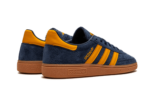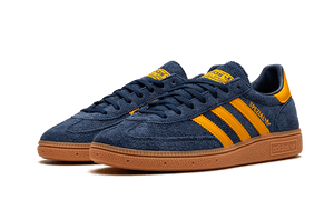 The Adidas Handball Spezial "Night Indigo" brings back the essence of a classic model introduced in 1979, specifically designed for handball players. This version comes in a stylish midnight blue and yellow color scheme, providing a captivating combination that stands out in any outfit. The footwear is made from soft suede, ensuring comfort and durability, while Adidas' iconic three stripes adorn the sidewalls. The design is finished with a soft gum rubber outsole, which not only enhances the vintage aesthetic but also offers excellent traction and support during use.