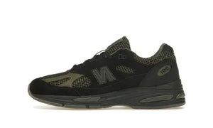 Stone Island reinvents New Balance's 991 silhouette with a vision that captures the essence of repurposed industrial spaces. The Stone Island MADE in UK 991v2 version stands out for its use of textured and coated leather on the reinforcement, and a variety of reflective details that reinforce the concept of industrial space. Presented in a color palette that combines olive green, gray and black, this model features a mesh upper that evokes interwoven metal, complemented by nubuck overlays.