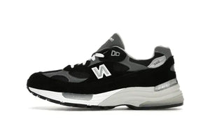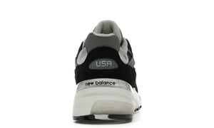 The New Balance 992 Black Gray Suede's upper is constructed from black suede with gray accents, and is adorned with white leather and "N" emblems on both lateral sides. The sneaker features a black rubber outsole and a white midsole with gray accents. The midsole is equipped with ENCAP technology, which offers stability and cushioning. In addition, the sneakers feature a padded tongue and collar, providing greater comfort.