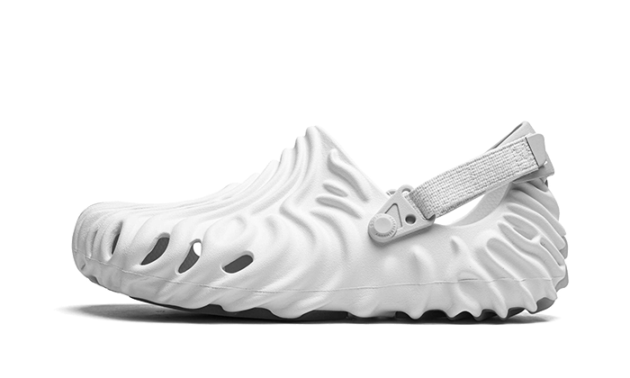 Allí Zueco Crocs Pollex Salehe Bembury Stratus muestra una estructura de cáscara de huevo , grabada con patrones moldeados en los relieves ondulados que recorren todo el tallo de EVA. El modelo revisado revela los estampados digitales y las firmas de Salehe Bembury , así como los paneles translúcidos de Ton-sur-Ton en las extremidades de la silueta.