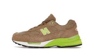 En la década de 1990, el espíritu emprendedor de Frieda Rapoport Caplan ayudó a transformar el kiwi en la fruta exótica comercial más famosa. Para celebrar esta historia, las New Balance 992 Low Hanging Fruit están inspiradas en el kiwi con su parte superior de ante marrón que recuerda la textura peluda de la fruta, complementada con toques de verde neón. Una plantilla con gráfico de fresa alude a la relación entrelazada entre las dos frutas.