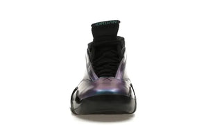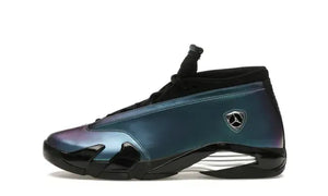 Esta versão low da Air Jordan 14 é composta por três elementos distintos. Inicia-se com um tecido em espuma preta junto aos ilhós, seguido de uma tige em fibra de carbono azul metalizado que confere um visual impactante ao calçado. O blason do Jumpman, em prata, mantém a inspiração original, remetendo ao emblemático logo da Ferrari. Finalmente, a sola é enriquecida com uma unidade Zoom Air encapsulada, tanto no antepé quanto no calcanhar, proporcionando um amortecimento superior, enquanto o padrão de chevrons na outsole oferece uma excelente tração.