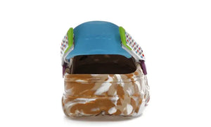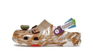 Em uma colaboração única com a Kellogg's Cinnamon Toast Crunch, o Crocs Classic Clog Cinnamon Toast Crunch apresenta uma construção em espuma marmorizada nas cores marrom e branco, complementada por uma tira de tornozelo xadrez multicolorida e uma almofada no calcanhar azul. No topo, Jibbitz temáticos do Cinnamon Toast Crunch destacam o divertido tema do calçado.
