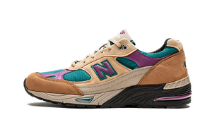 A colaboração entre a marca londrina Palace e a marca de Boston, New Balance, fortalece-se com o lançamento do Palace x New Balance 991 Made In UK "Brown Teal". Este modelo capta perfeitamente a tendência gorpcore com uma estética claramente voltada para o outdoor. A sapatilha combina múltiplos materiais como malha, camurça e nylon ripstop em tons de castanho, animados por toques de turquesa e magenta e contrastados com preto. O branding da Palace destaca-se nos calcanhares, nas línguas e nas palmilhas, enquanto "P991" adorna os dubraes dos atacadores, conferindo um carácter exclusivo a este design.