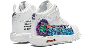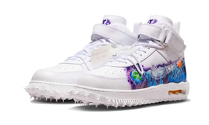 As Nike Air Force 1 Mid Off-White Graffiti White são uma obra de arte urbana.