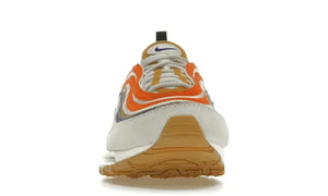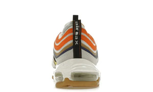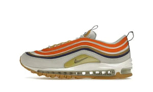 O Nike Air Max 97 SE M. Frank Rudy é uma homenagem ao criador da tecnologia Air Max da Nike, Frank Rudy. Este tênis destaca-se pela unidade Air Max visível que se estende por todo o comprimento do calçado, complementada por amplas janelas transparentes. A inscrição "EST. 1997", que faz referência à data de lançamento da tecnologia Air Max, está presente ao longo da unidade Max Air no lado lateral do tênis. Além disso, o forro interno exibe esquemas da Max Air. Painéis sobrepostos de malha e couro criam um padrão ondulado nas laterais do tênis. Embora o esquema de cores inclua Preto e Summit White, os detalhes em Safety Orange ao redor da gaiola dos atacadores são particularmente atraentes.