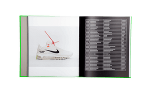 O livro Someg's Off discute as inspirações e ideias que levaram o artista a revisitar uma infinidade de silhuetas da Nike. O nível de detalhe é extenso, com imagens exclusivas do processo criativo de Virgil Abloh, protótipos de sapatilhas e conversas entre o artista de Rockford e designers da Nike.